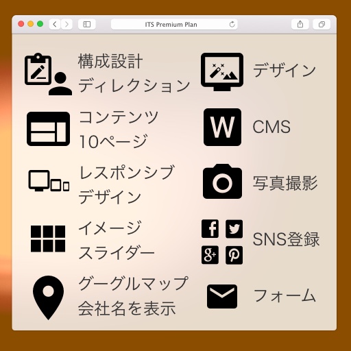 テンプレート用の制作プランです、デザインにこだわらない企業案内用のサイトはこのプランで対応できます。(合計5ページ)